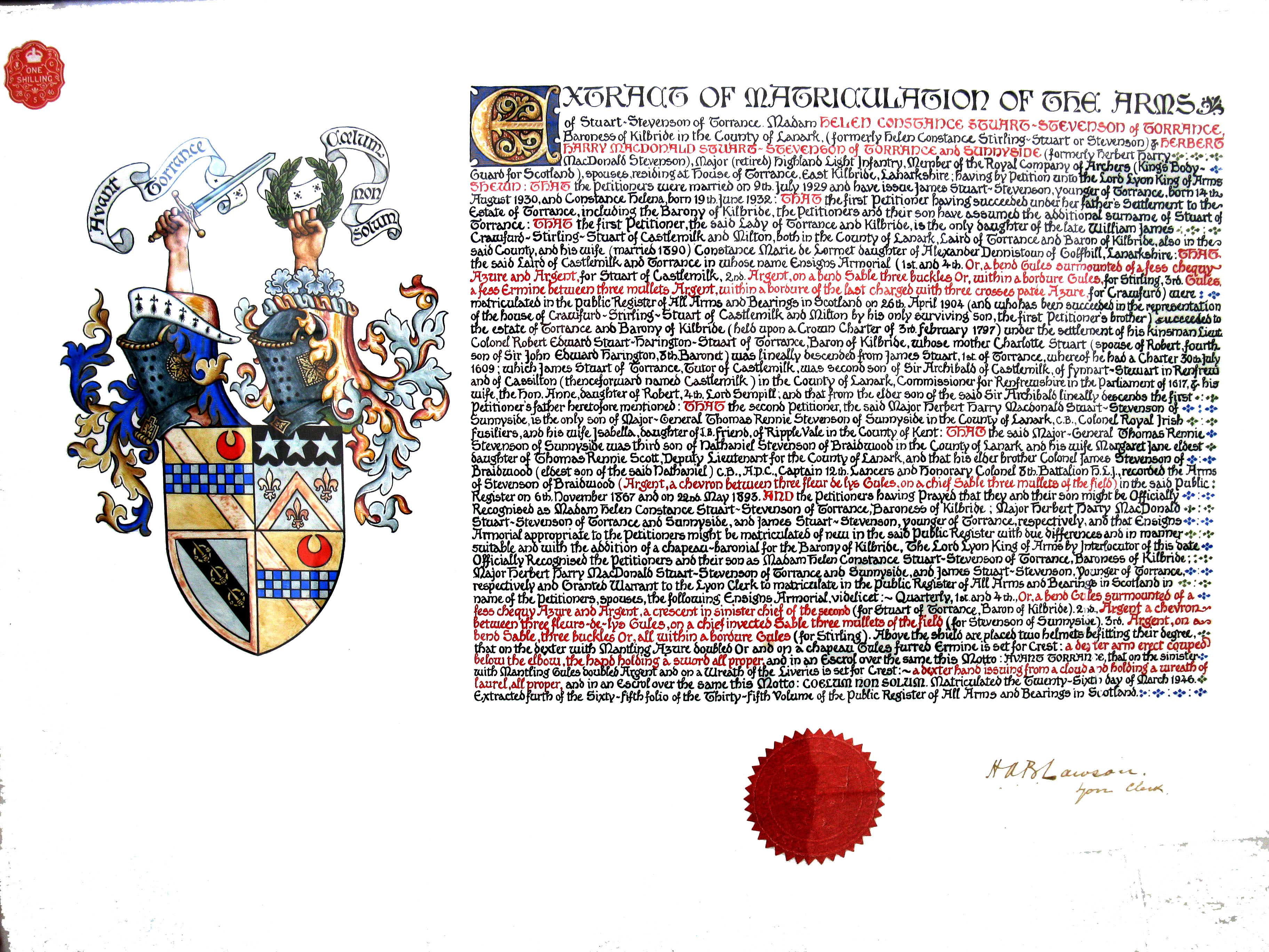 Crawfurd-Stirling-Stuart of Castlemilk Presentation